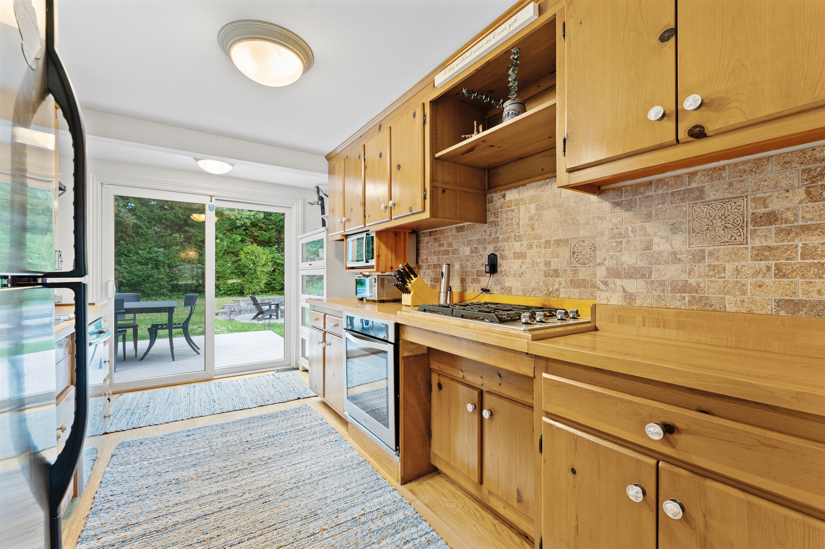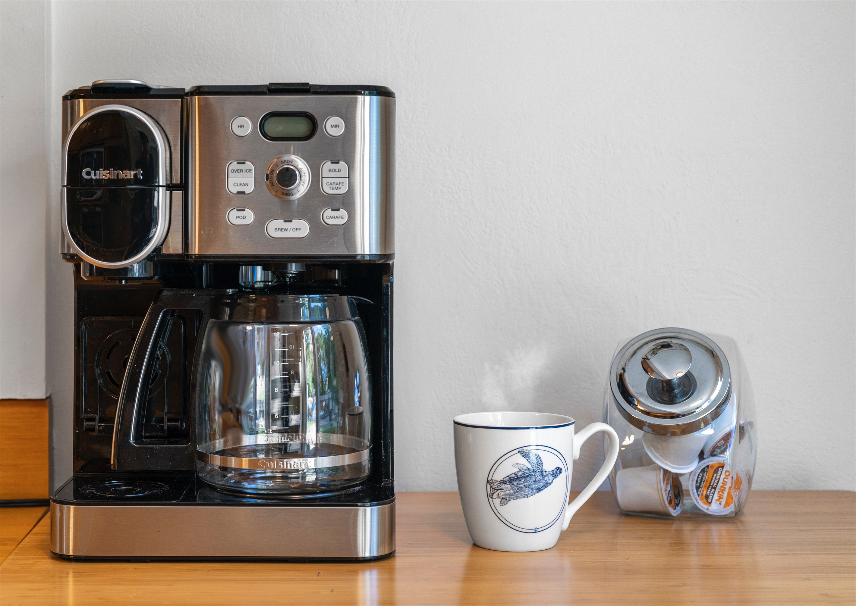 • The fully equipped kitchen has everything you need to cook at home — from morning coffee to family dinners. The dining area seats 6, with additional chairs available in the breezeway and laundry room.