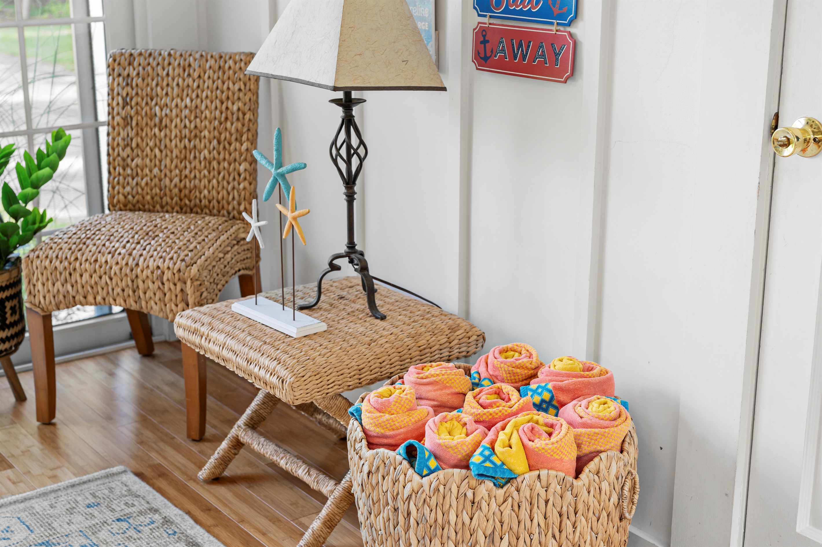 Full Bathroom: Shared bath with shower/tub combo, ideal for freshening up after a day at the beach.